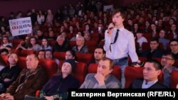 7 марта кандидат в президенты России Ксения Собчак посетила Иркутскую область, где у нее было запланировано несколько частных встреч и одно публичное мероприятие – встреча с избирателями. Мероприятие проходило в кинотеатре "Чайка": зал, рассчитанный на 430 мест, не вместил всех желающих, люди стояли в проходах, но и этого пространства было мало. За десять минут до начала встречи Ксения Собчак дала интервью корреспонденту "Сибирь.Реалий".