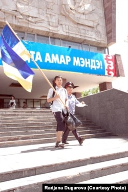 События десятилетней давности вынудили покинуть пределы большой и малой родины – России и Бурятии – историка Раджану Дугарову. Она была в числе тех, кто активно сопротивлялся укрупнению регионов. В 2006 году она была арестована во время пикетирования Съезда бурятского народа, который проводился в здании Театра бурятской драмы в Улан-Уде. На Дугарову как организатора протестной акции завели административное дело.