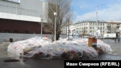Горы цветов и мягких игрушек аккуратно прикрыты полиэтиленом. У мемориала погибшим в "Зимней вишне" в Кемерове по-прежнему дежурят волонтеры.