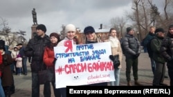 Участники митинга пришли с транспарантами: "Байкал – наша Родина! Тайга – наш дом!", "Хватит жить по принципу: случилась катастрофа – принимаем меры!", "Сохраним Байкал для наших детей и потомков", "Байкал – достояние народа! Услышьте нас!", "Байкал – наш".