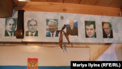 Православная икона соседствует с целым "иконостасом": портреты российских правителей, вырезанные из журналов. Некоторые повторяются. Чаще всего Иван Грозный и Владимир Путин. Потому что дольше всех, как говорит Маран.