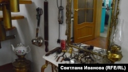 До революции домом владел начальник тюрьмы, капитан русской армии Иван Сыроватский, которого большевики расстреляли 19 февраля 1920 года. После расправы над собственником жилье передали в рабоче-крестьянские руки. Об этом рассказывает табличка у двери. Под ней на трюмо красуется небольшая коллекция из ножниц, машинок для стрижки волос и фенов. "Это машинка военных лет. А это первый советский фен", – показывает владелец дома и говорит, что экспонаты доставлены из разных городов России.