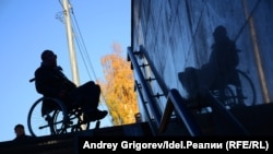 Красноярский инвалид-колясочник молотком разбил бордюр