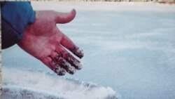 Полгода назад на углепогрузке появились пылезащитные пушки, от которых, по словам Владимира Сальникова, толку мало. Он показывает фотографии: его огород, засыпанный угольной пылью; рука, которую будто углём перепачкали, а на самом деле – провели ладонью по снегу; чёрные сосульки на крыше.
