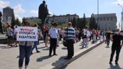 В Иркутске также проходит акция солидарности. Участники собрались в сквере Кирова, к нему "примыкают" здания мэрии Иркутска и правительства области. Сотрудник администрации в мегафон призывал всех разойтись. Люди постояли немного и пошли шествием по центральным улицам города. Идут по тротуарам, дороги переходят по светофорам. У некоторых в руках плакаты с лозунгами: "Просыпайтесь города, с нашей родиной беда", "Володя, выпили себя, а не наш лес! Байкал", "Хабаровск, мы с тобой!", "Я Мы Байкал". Очевидцы говорят, что участников больше в два-три раза, чем в прошлую субботу. Тогда в несанкционированной акции участвовали от 150 до 200 человек, по разным оценкам.