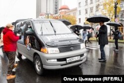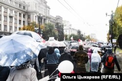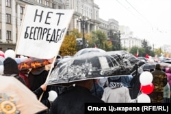 Тринадцатая суббота протестов в Хабаровском крае началась с поддержки Беларуси и похорон "Банды Путина". Протестующих не остановил сегодня ни проливной дождь, ни новый "концерт", заглушавший все лозунги, ни усилившаяся группировка полиции.
