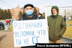 Галина имеет в виду историю, приключившуюся с журналистом Сергеем Плотниковым, которого в ночь на 16 октября неизвестные похитили и вывезли в лес. Сергей освещает протесты на ютьюб-канале RusNews. Он также пришел сегодня на акцию протеста. Сергей уверен, что похитили его силовики, но говорит, что его это не остановит.