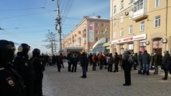 Полиция попыталась взять участников акции "в кольцо", поэтому многие убегали от сотрудников ОМОН по сугробам к корпусу университета. Полиция задержала мужчину с "золотым ершиком". Те, кого полиция не пустила на площадь, двинулись в сторону площади Свободы.