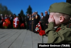 А в Краснодарском крае для малышей провели отдельный военный парад "Мы – правнуки великих победителей", в котором участвовали сразу несколько детских садов города Ейска. Кроме российских триколоров, дети размахивали красным флагом с серпом и молотом. Воспитанники и педагоги каждой группы маршировали под звуки духового оркестра, одетые в форму сухопутных, воздушно-десантных, военно-морских войск. На голове каждого ребенка – пилотка.