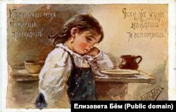 – Елизавета Бём была одним из основоположников русской иллюстрированной открытки, и у нее появилось масса подражателей, – рассказывает Лев Боярский. – На нашей выставке можно увидеть целые серии открыток, выполненных в похожей манере в начале XX века. Это 15 рождественских и пасхальных открыток Елены Лебедевой-Анохиной, 38 открыток из серии "Дети на войне" Александра Лаврова, а также все 10 открыток серии "Дети-политики" Владимира Табурина.