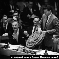 9 февраля 1945 года после Ялтинской конференции посол США в СССР Аверелл Гарриман выписал на восстановление детского лагеря "Артек" чек на 10 тысяч долларов, а взамен получил от пионеров американский герб, выполненный из ценных пород дерева. Этот герб провисел в кабинете посла 8 лет, и лишь тогда выяснилось, что в него был помещен "жучок" – изобретение советского ученого Льва Термена.